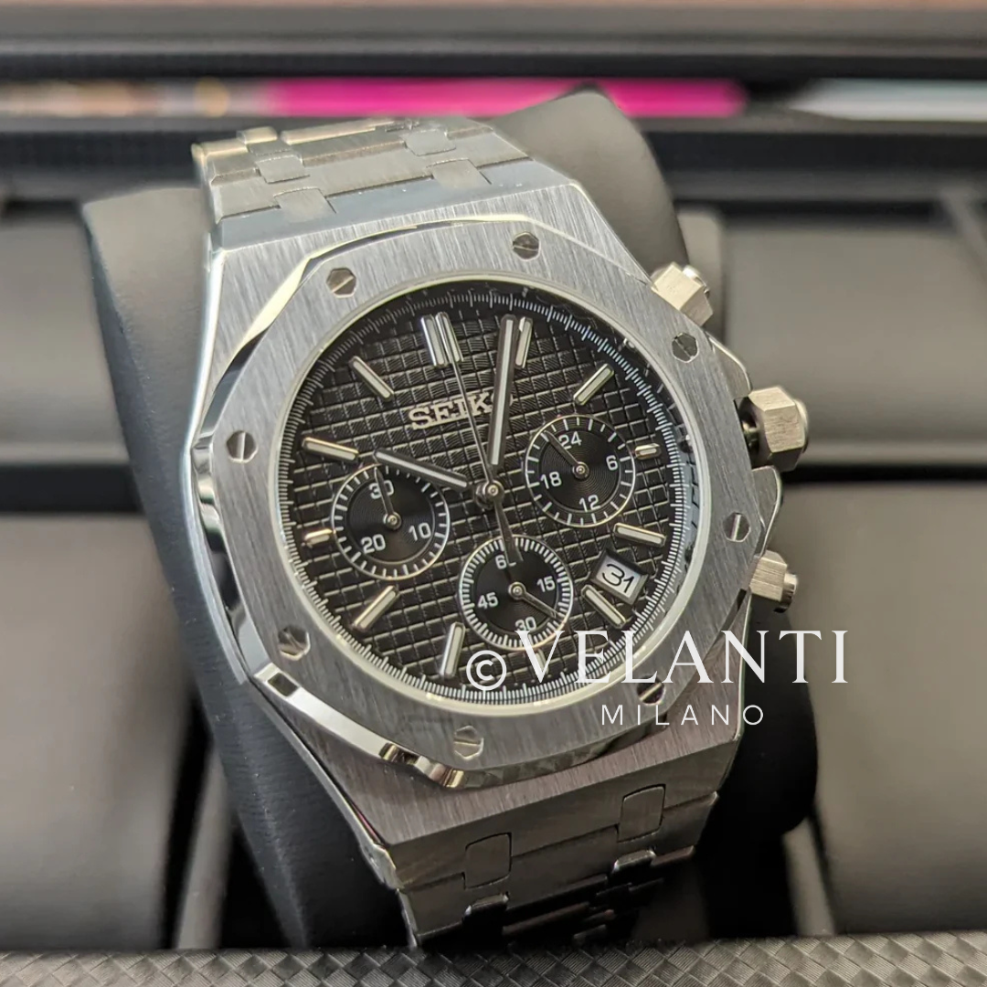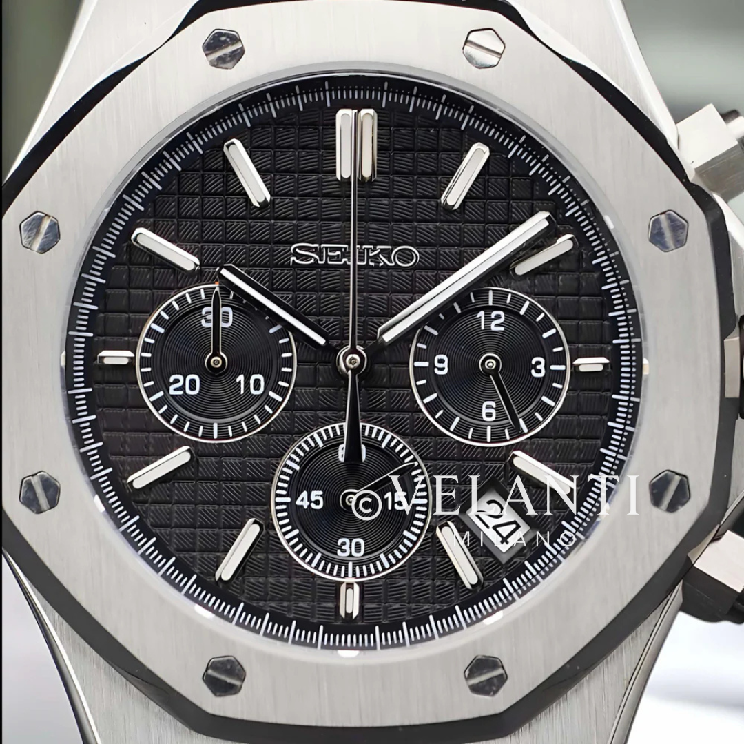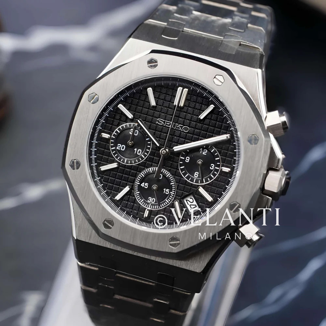 İkonik Royal Oak tasarımından ilham alarak ve prestijli Seiko VK63 hibrit mekanizmasını barındırarak, Seiko Mod Royal Oak'ı sunuyoruz. Mükemmel bir mükemmeliyet ve erişilebilirlik birleşimi olan 41 mm'lik yüksek kaliteli bir saat.