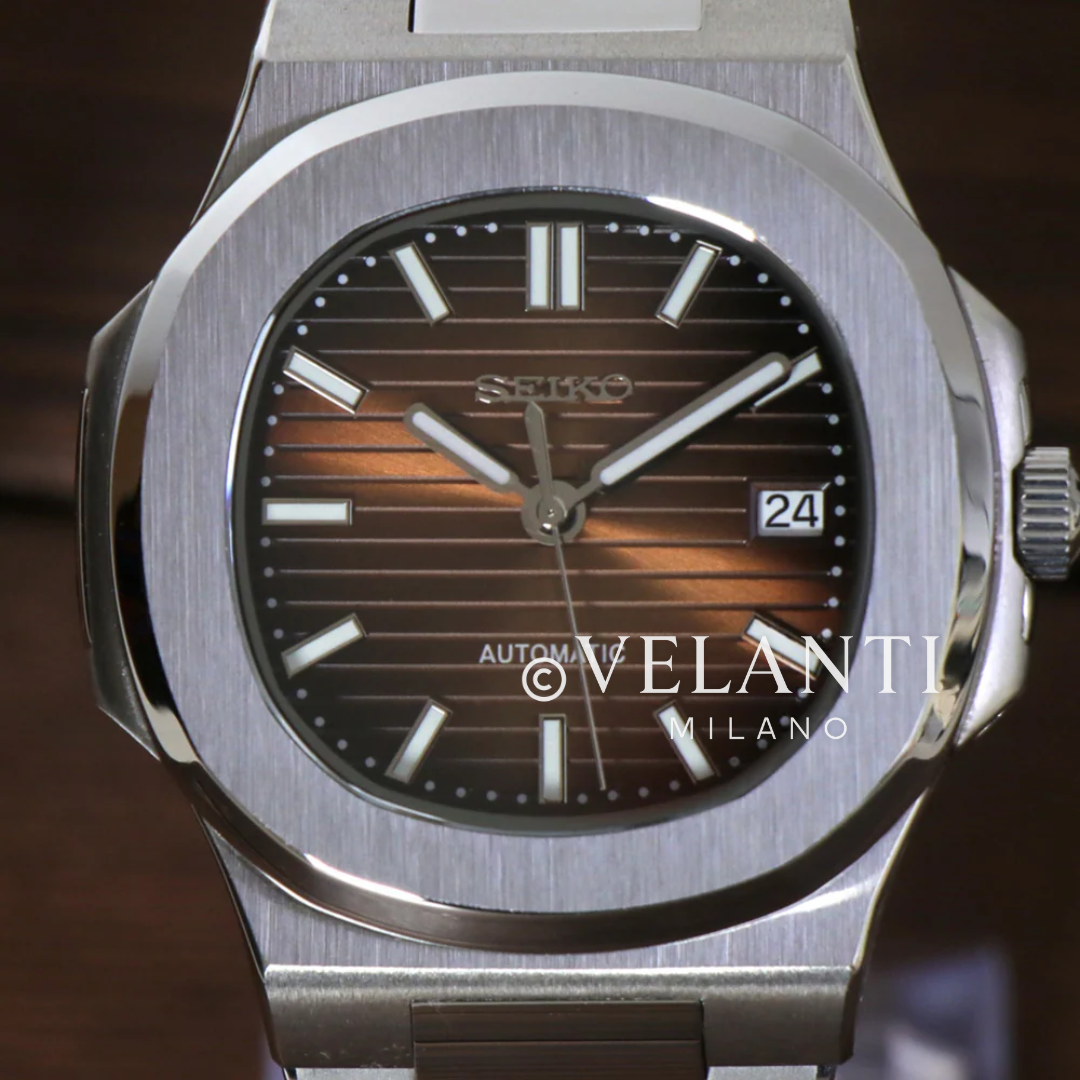 İkonik Nautilus tasarımından ilham alınarak ve prestijli Seiko NH35 otomatik mekanizması ile donatılmış olan Seiko Mod Nautilus'u sunuyoruz. 41 mm yüksek kaliteli bir saat, mükemmellik ve erişilebilirlik arasında mükemmel bir ittifak sağlıyor.